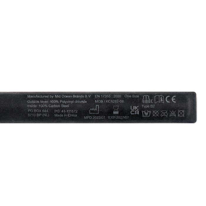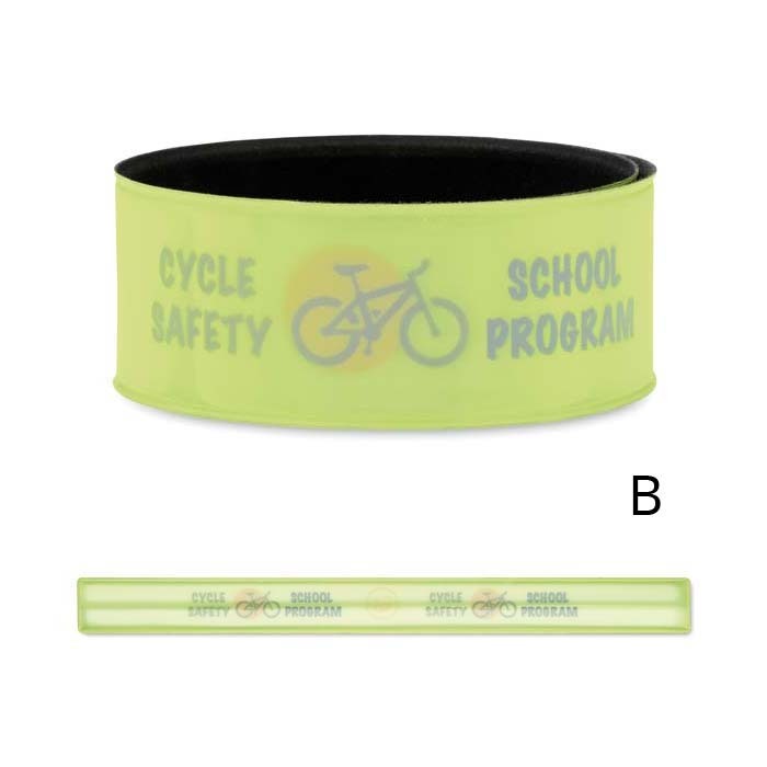 Helkurriba hõbeda- või kollasevärvilise helkivast fooliumist pinnaga, mis vastab CE EN17353 direktiivile. Materjal: 0,28 mm PVC ja teras, musta sametise tagusega.
