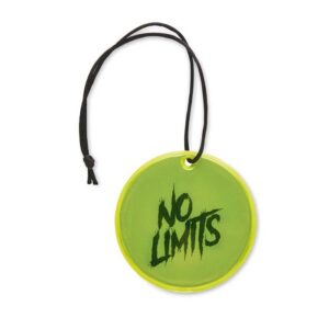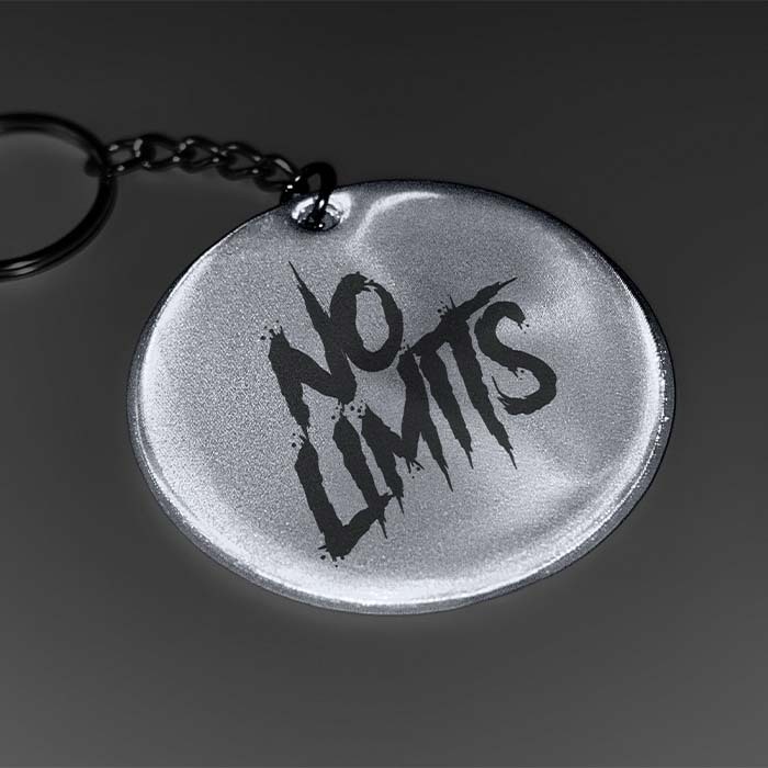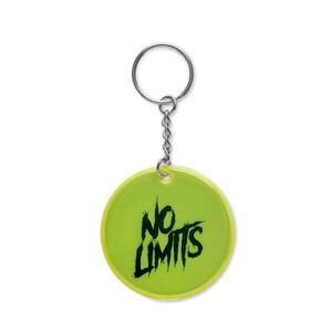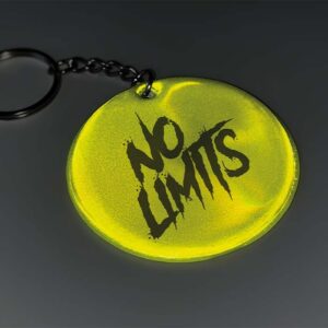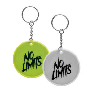 Helkurvõtmehoidja hõbeda- või kollasevärvilise helkivast fooliumist pinnaga, mis vastab CE EN17353 direktiivile.