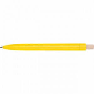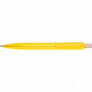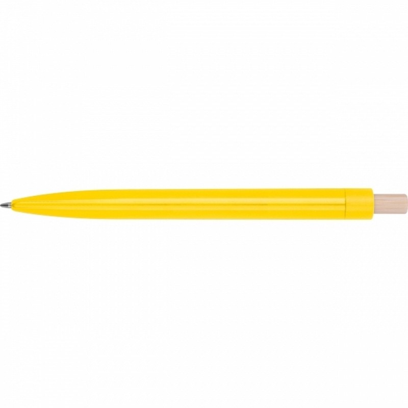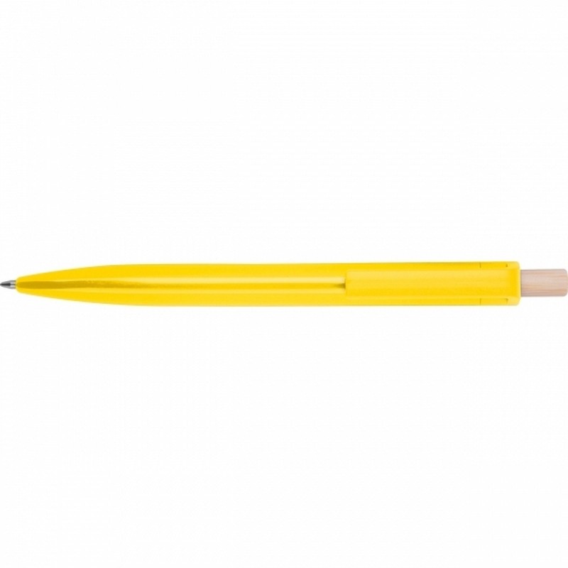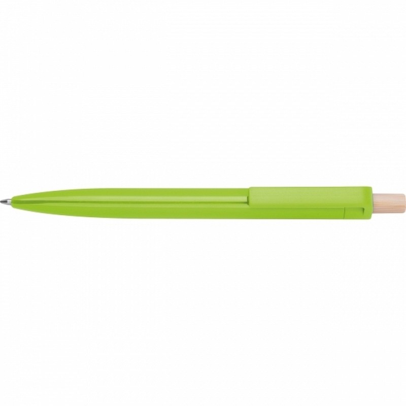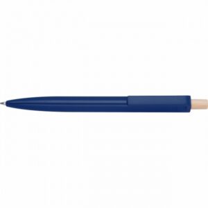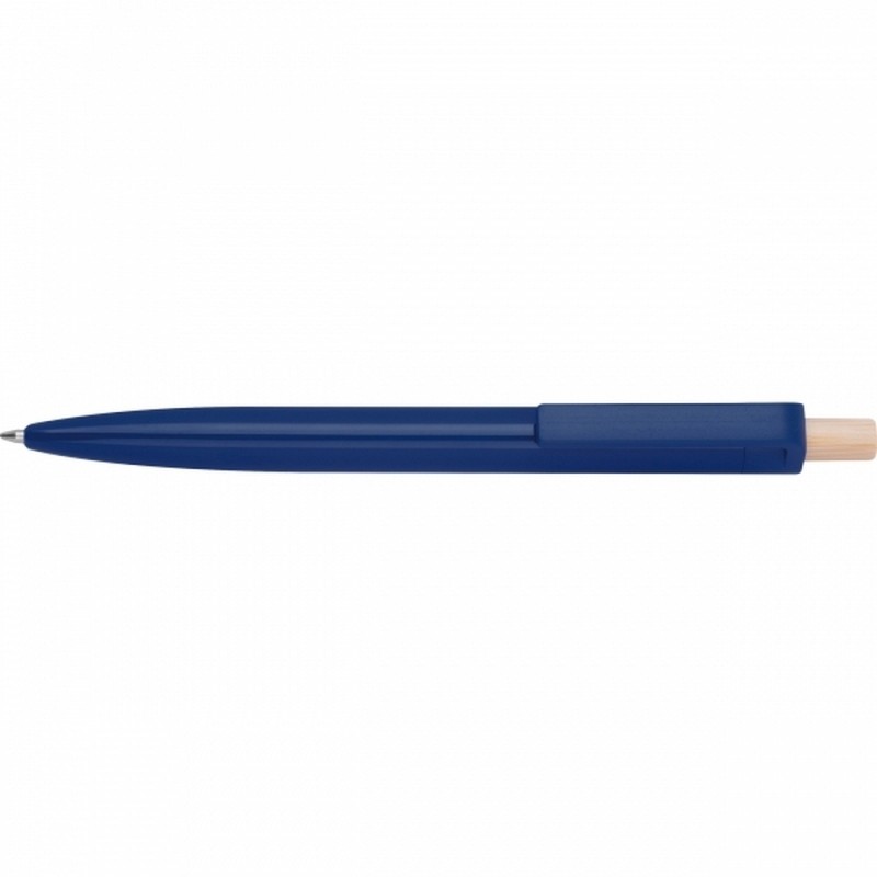 Taaskasutatud ABS-plastist pastapliiats bambusest vajutusnupuga. Sinine tint.