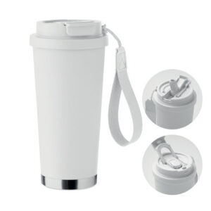 Topeltseinaga joogitops, valmistatud 90% taaskasutatud ja 10% tavalisest roostevabast terasest. Kaas on PP-st ja toimib 2-ühes joogiava ja kõrrega kaanena. Varustatud RPET-materjalist kanderihmaga. Lekkevaba. Mahutavus: 500 ml.